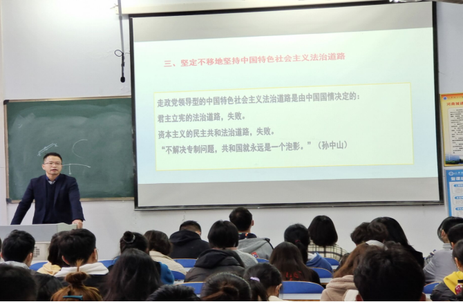 (通讯员 胡小光)为深入学习习近平新时代中国特色社会主义思想和党的十九大及十九届二中、三中、四中、五中全会精神,深入贯彻习近平法治思想,不断提升师生法治意识和法治素养,11月9日,beat365亚洲体育官方网站和外语公司联合邀请公司法公司王晓永老师到5#207教室开展法制宣讲会。根据疫情防控要求,beat365亚洲体育官方网站、外国语公司80余名同学参加。宣讲会由beat365亚洲体育官方网站高分中心主任高宁主持。