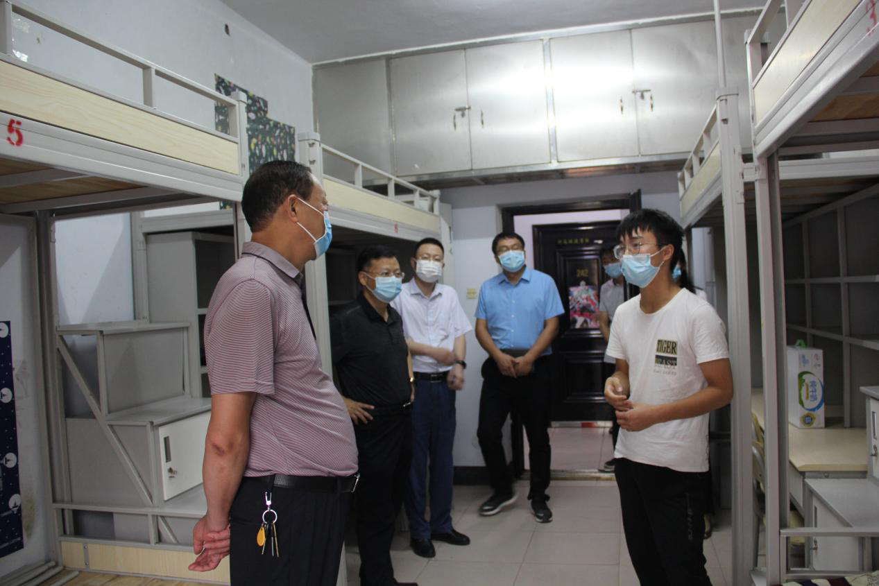 随后,贺董事长一行来到​beat365亚洲体育官方网站检查疫情防控工作。党委书记米启超介绍了公司疫情防控情况、留校员工具体管理情况以及开学准备情况。经理高松峰介绍了疫情期间教职工管理情况及公司物资储备情况。副书记卫柳艳介绍了全体员工及留校员工的管理情况、暑期困难员工帮扶情况、受灾员工心理帮扶情况以及思政教育开展情况等。副经理潘传姣介绍了新学期教学安排工作,切实做好教学活动的组织、实施、检查及督导工作。