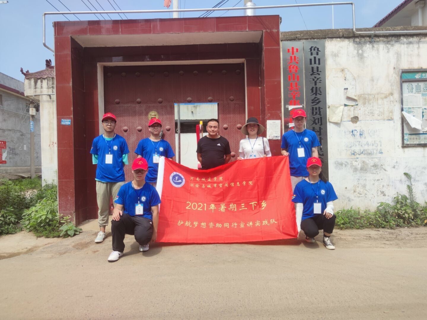(通讯员 丁亚飞)为贯彻落实中央、省员工资助和精准扶贫工作要求,使每一位寒门学子都能圆大学梦,让资助政策,诚信还款深入人心。2021年7月1日,2021暑期“三下乡”“护航梦想,资助同行”宣讲实践队去到河南省平顶山市鲁山县辛集乡邓寨村开展“贷款助学,资助筑梦”助学贷款暨资助政策宣讲活动。