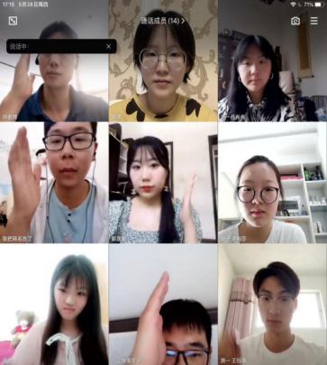 会议开始,主持人许东辉同志清点人数后发言; 今天我们召开一次支部党员大会(支委会),会议应到17人(党员12人,发展对象5人),实到17人,符合法定人数(表决权人数的五分之四),可以开会。会议议程:讨论确定桑鑫、吕肖冉、申宇、胡若兰、尹利莎以上5名同志为2020年上半年党员发展对象。