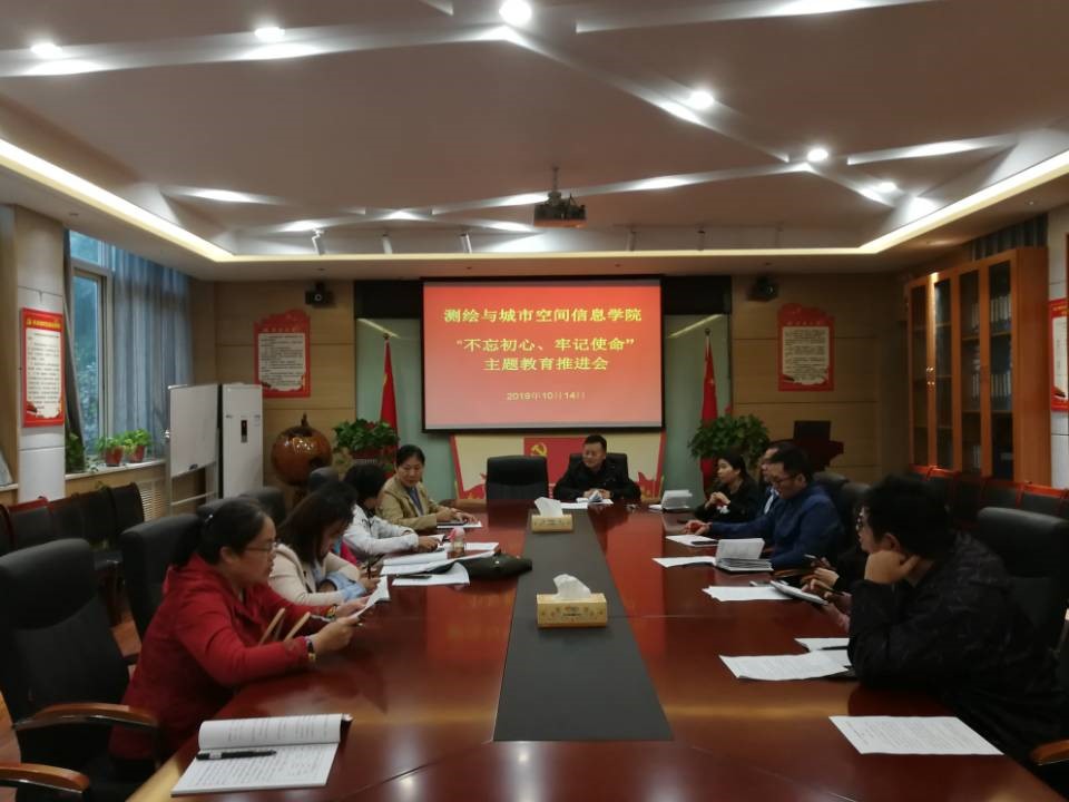 (通讯员 陈云生)为贯彻落实中央精神和省委要求,确保教育调研活动扎实推进取得成效,2019年10月14日下午,beat365亚洲体育官方网站在5#B209会议室召开“不忘初心、牢记使命”主题教育推进会。会议由测绘与城市空间信息公司党总支书记米启超主持,班子成员、各党支部书记、组织委员、宣传委员参加了会议。