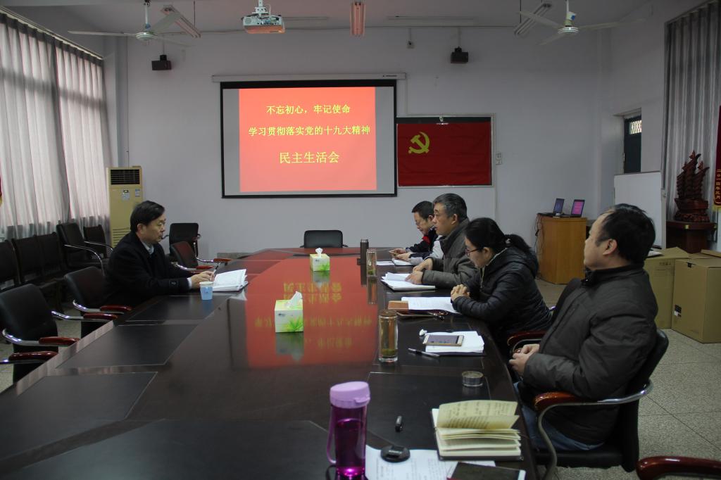 吕鹏飞首先代表党总支汇报了2017年度领导班子工作总结,自身学习十九大精神、习近平新时代中国特色社会主义思想的情况,并带头开展了批评与自我批评。班子其他成员也各自围绕主题认真总结,开展了批评与自我批评。郑豪民表扬了班子一年来在深入学习贯彻党的十九大精神,牢固树立“四个意识”,落实党风廉政建设方面的工作,并提出中肯的建议。