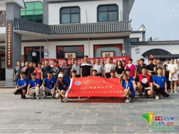 图为实践项目正式启动后县、乡、校领导、李庄乡全体醋坊老板与全体实践团成员进行合影留念。