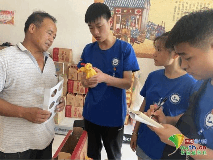 图为实践团志愿者向和谐陈醋坊老板询问商品信息并对信息进行记录。中国青年网通讯员 秦傲 摄