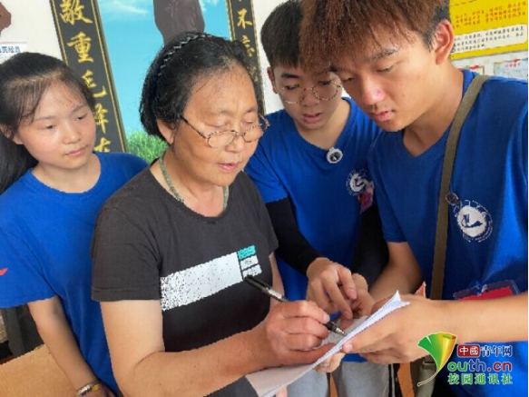 图团队成员教老人填写问卷。中国青年网通讯员秦傲摄