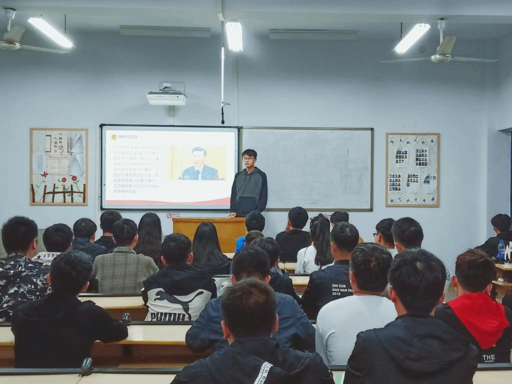 在五四运动100周年即将来临之际,中共中央政治局就五四运动的历史意义和时代价值举行第14次集体学习,习近平总书记主持并发表重要讲话。充分肯定了五四运动的历史意义和时代价值,新时代青年加强学习五四运动精神指明了前进方向。在本次团日活动中,各班团支书带领同学们深刻学习了习近平总书记重要讲话精神,并向大家介绍了什么是中国青年运动的时代主题等相关问题,同学们纷纷上台表述了自己对于“五四”历史和精神的理解。最后各班团支书回答了同学们的问题并对本次团日活动做出结,活动圆满结束。