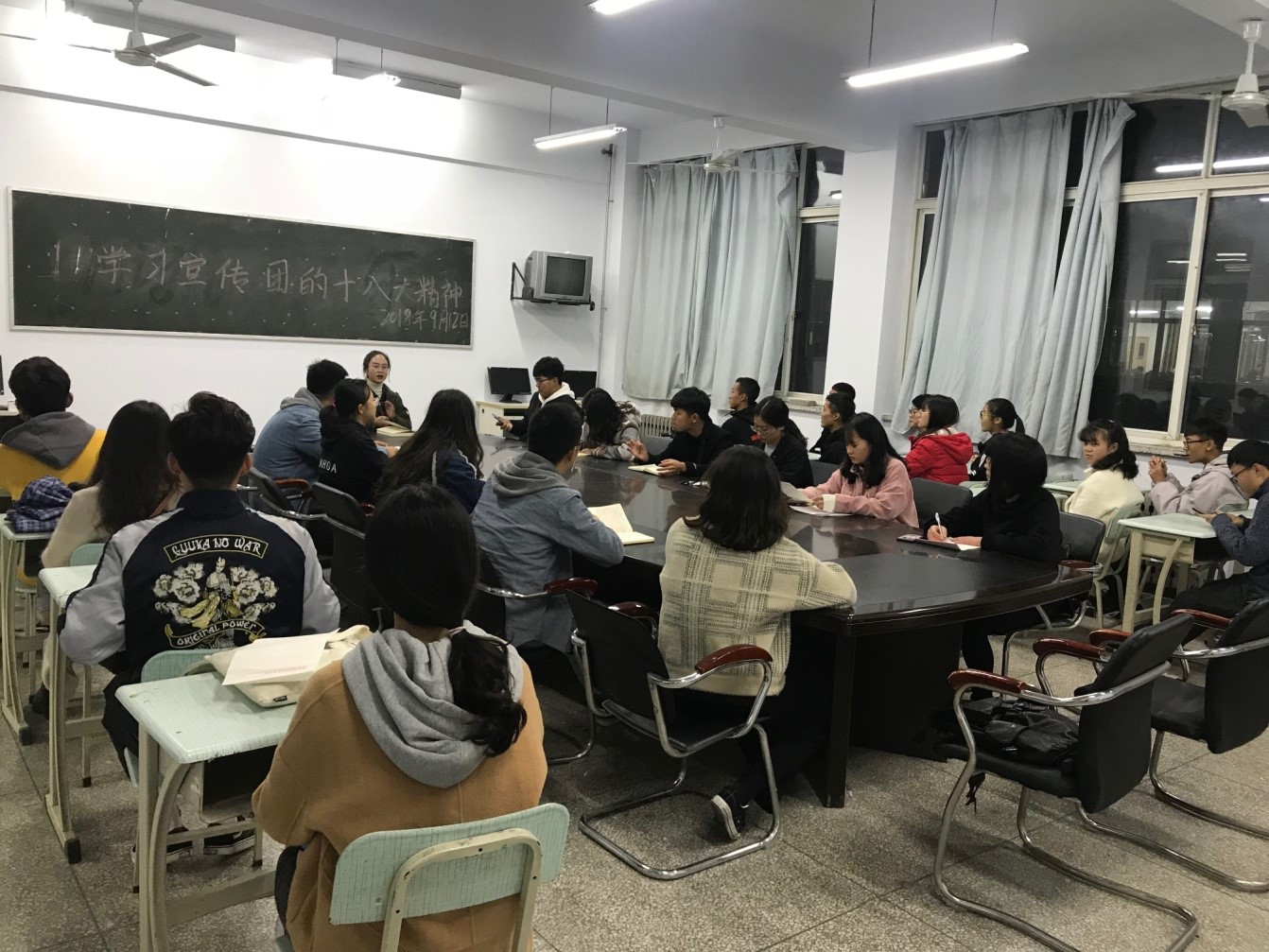 (通讯员 胡若兰)为热烈祝贺中国共产主义青年团第十八次全国代表大会召开,深入学习贯彻团十八大精神,在全校营造学习团十八大、贯彻团十八大的良好氛围。2018年9月10日,beat365亚洲体育官方网站以员工会主要干部为代表开展学习团十八大精神的主题会议,以及在各班开展学习团十八大精神的主题班会。