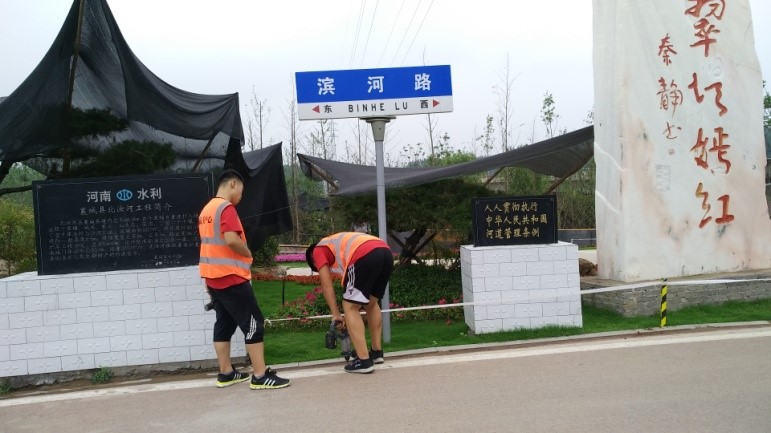 7月9日上午9点,志愿者团队来到饮用水源地保护区开始准备勘测,定牌,立桩。10日上午志愿者团队来到许昌市襄县环保局与水污染防治攻坚办的石科长进行交流沟通,确定下一步工作任务。在当地部门的配合下,志愿者们五天内完成北汝河保护区范围内的勘界立标任务。随后对水资源保护资料进行分类整理,项目总结。经过10天的工作,襄县麦岭镇地下水井群水资源保护区的工作全部完成。