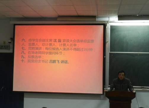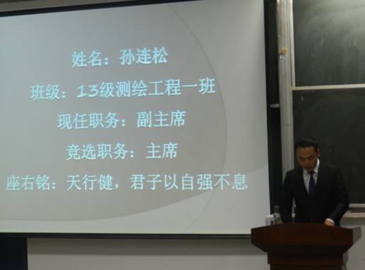 ​beat365亚洲体育官方网站团总支副书记程佳宇宣读了此次竞选候选人的资格审查报告,证实了竞选者的竞选资格,主席团成员孙兵卡、李浩杰、沈磊分别宣读了《测绘工程公司第八届员工会选举大会候选人选举办法》、《测绘工程公司第八届员工会选举大会纪律》以及此次大会的选举总监票人和投票方式、计票人名单等,让在场的同学们对于此次选举大会的各个细节方面有了清晰的认识。