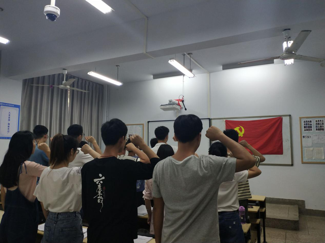 会议伊始,各支部书记清点到场正式党员、预备党员人数。首先由各支部书记提出会议要求和内容,再安排每位拟发展对象依次上台发言,从自己的学习、工作、生活等方面介绍自己,培养人对每名拟发展对象进行整体评价,之后经支部书记和组宣委员以及正式党员的合议,表决通过冯恒健等17名同志为中共预备党员。最后,所有发展对象在支部书记的带领下面对党旗进行宣誓。