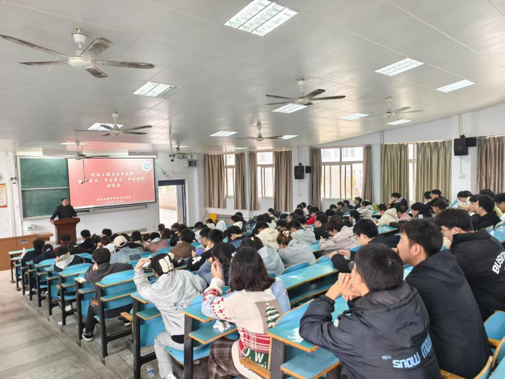 为顺利推进毕业生实习就业工作,111214:45,测绘工程系在5号教学楼C414教室召开了2025届毕业生生产实习、毕业实习及毕业设计动员大会。本次大会由测绘工程系杨蕴主任和屈乾龙副主任共同主持,全体毕业生参加了会议。