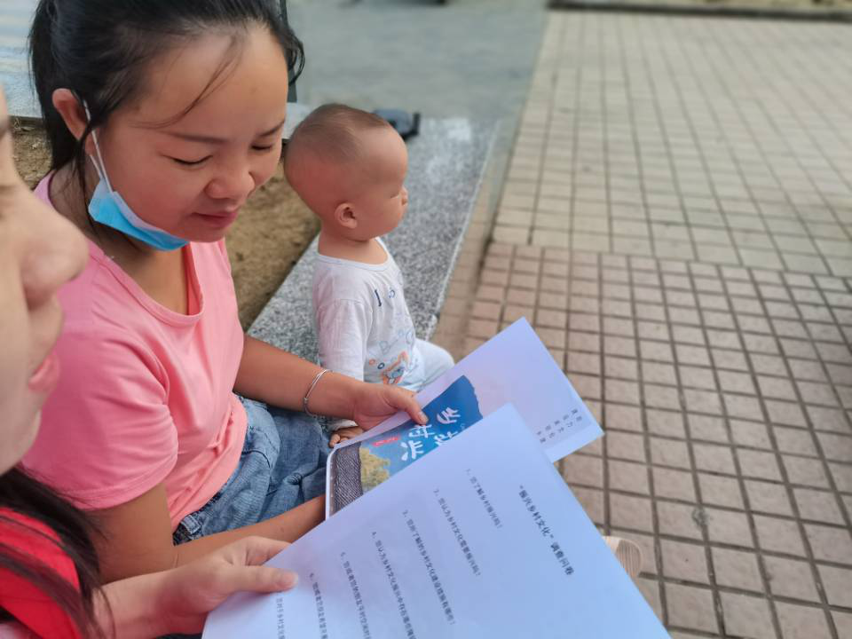 在实地采访中,服务团成员用热情感化了村民,使百姓积极配合并且非常支持本次活动地开展。首先将先前打印好的《振兴乡村文化》活动海报发放到村民的手上,同时询问他们是否了解“振兴乡村文化”活动,对于不了解本次活动的村民,对他们耐心地讲解,用最通俗易懂的方式让他们明白,并且询问他们是否有了解到当地实施了哪些有关本次活动的措施,他们平时的文娱活动有哪些,对于闲余时间进行不良娱乐方式的村民进行沟通,并提供一些富有意义的文娱活动建议给村民。最后询问他们希望开展哪些文化科技卫生下乡活动以及对于本次活动的建议。