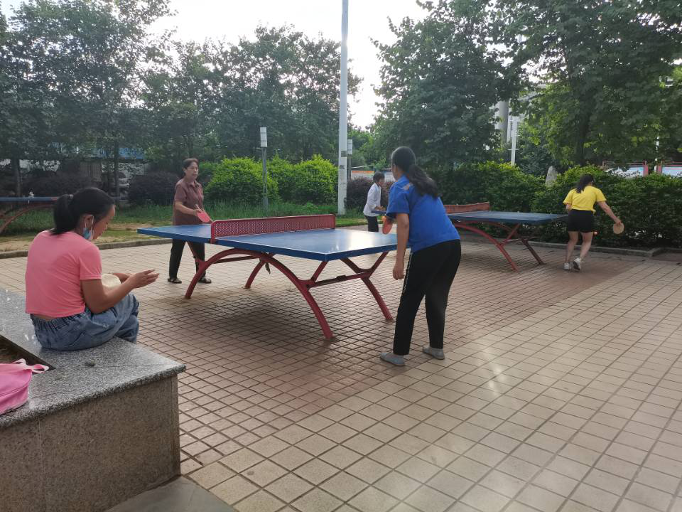 图为当地百姓进行乒乓球运动