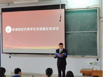 活动开始,由党总支副书记卫柳艳讲话,为同学们介绍开展本次活动的意义,并希望同学们认真听取榜样事迹,汲取榜样力量,发扬榜样优良品质,提升个人素养。随后“青春榜样”先进事迹报告团五位同学依次上台做演讲。五位同学分别从展现主人翁意识、敢于表达自己、自立自强、积极拼搏、树立梦想五个方向展开叙述,以自己为例,向同学们介绍了他们精彩且充实的老员工活,并希望同学们找到自己的学习方向,向目标努力拼搏。最后团学办主任许东辉对活动进行总结发言。