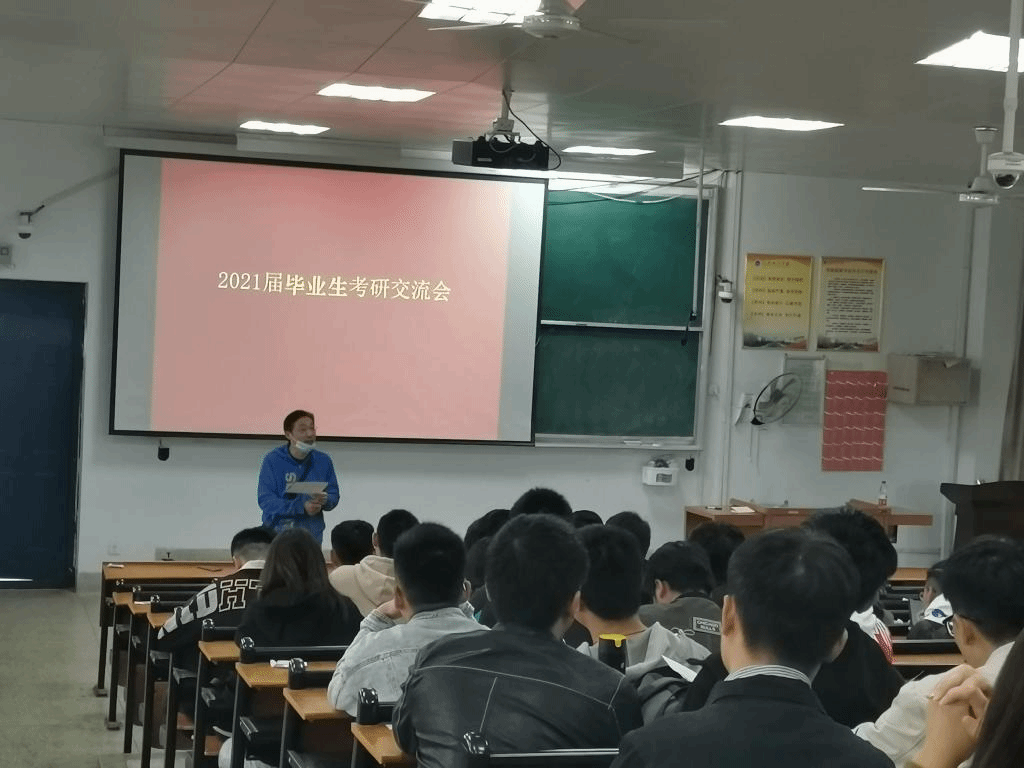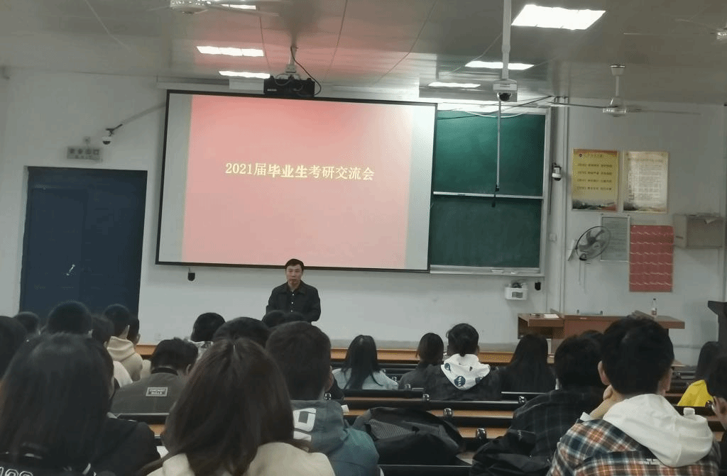 交流会开始,老师们分别就为什么要考研以及如何考研等问题做了详细讲解。考研一方面是为了就业,同时也是为了自己更好的发展打下基础。对于如何考研,分别从专业、学习科目、学习计划、公司选择、心态问题等几方面分析。最后,着重强调心态问题,老师们表示有一个良好的心态很重要,一定要坚持到最后,调整好自己的心态,不懈的努力、良好的心态以及恰当的复习材料是考研的正确方法。老师们风趣的语言、看门见山的讲述风格、清晰地条理,赢得了同学们阵阵热烈的掌声。