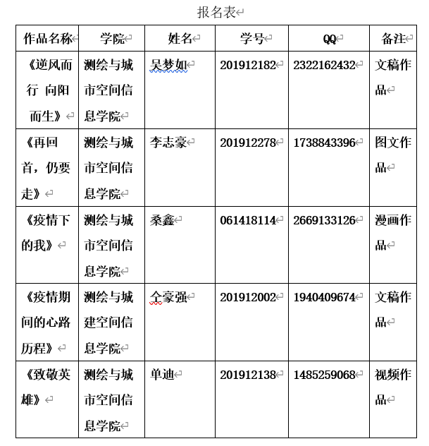疫情期间“心路历程”故事分享活动优秀作品统计表