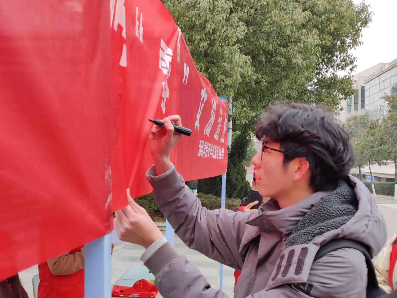 beat365亚洲体育官方网站的青年志愿者邀请同学们做关于“防艾滋”的问答题,在问答过程中志愿者们为同学们讲解关于预防艾滋病的知识,解答群众咨询,通过现场讲解,让员工对艾滋病的传播途径、预防措施和正确与艾滋病人相处等方面的有了更深入的了解,有效消除员工对艾滋病的恐慌心理,引导员工给予艾滋病人更多的关爱,让更多的认识艾滋病,参与活动的同学在做完问答题之后可以在条幅上签上自己名字并会获得由青年志愿者们手工制作的红丝带。