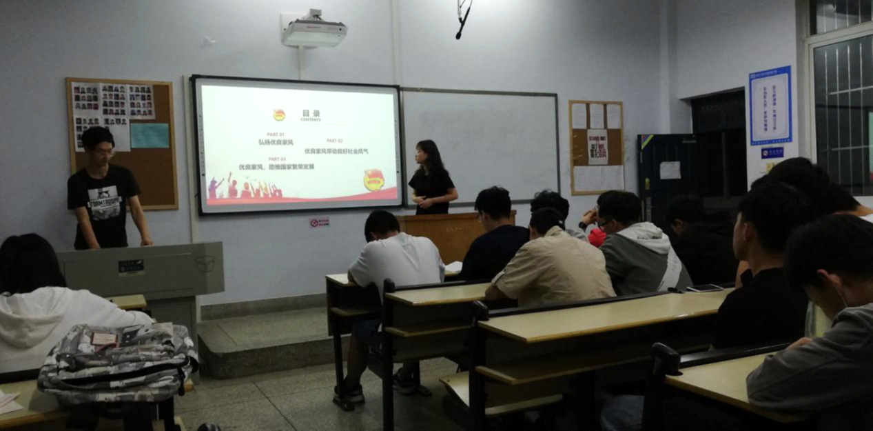 本次团日活动由团支书带领同学们重温习近平主席的深情话语,并观看了有关孝老敬亲的小品故事,从中总结了为什么要孝敬老人和优良家风对我们社会的积极影响乃至对整个民族和国家的积极影响,让同学们深刻感悟到没有国家的繁荣发展,就没有千千万万家庭幸福美满的道理。