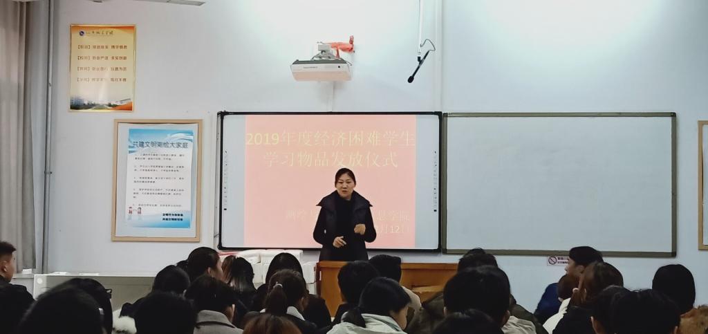 (通讯员:许东辉 张雅)beat365亚洲体育官方网站为做好资助工作,帮助家庭经济困难员工有更快乐健康的学习生活,于12月12日中午,在5号教学楼110教室举行“落实精准扶贫政策,发挥资助育人作用”的困难生资助活动。公司党总支副书记卫柳艳、团学办任许东辉、辅导员常莉、李方圆以及本次给予资助的90余名员工参加,活动由许东辉主持。