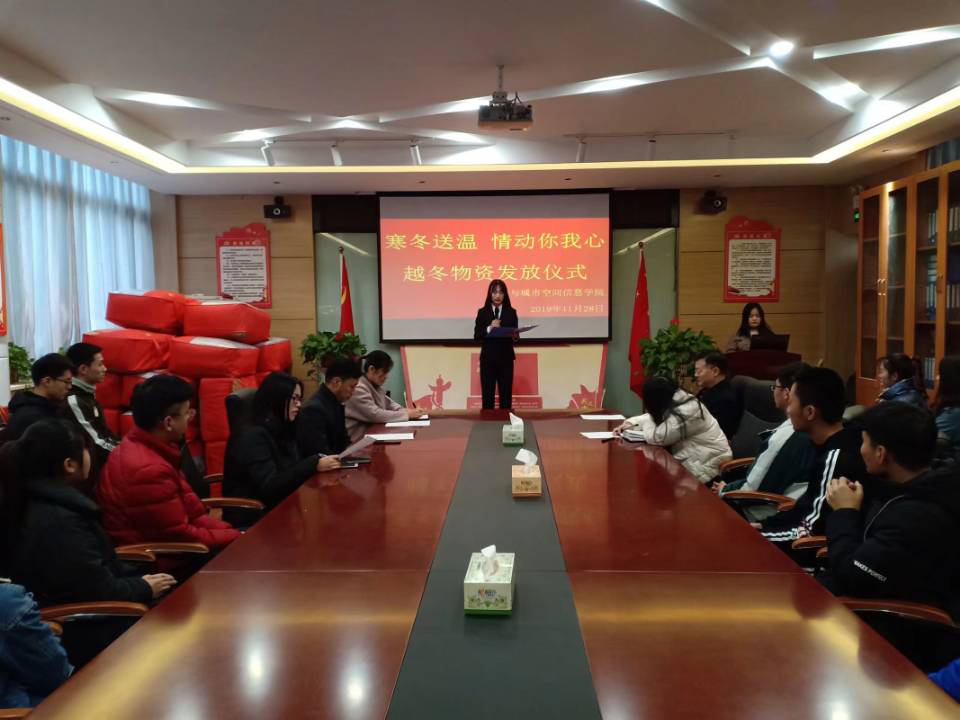 (通讯员 许东辉 刘兴宇)为了给同学们创造良好的学习条件,创建“和谐校园,温暖校园”,帮助生活暂时有困难员工度过一个寒冷的冬天,营造校园如家园的温暖氛围。11月28日下午,beat365亚洲体育官方网站在五号楼209室举办了“寒冬送温、情动你我心”越冬物资发放仪式。公司党总支书记米启超、党总支副书记卫柳艳、团学办主任许东辉、辅导员常莉、李方圆及贫困员工代表参加了发放仪式。仪式由李珮琰同学主持。