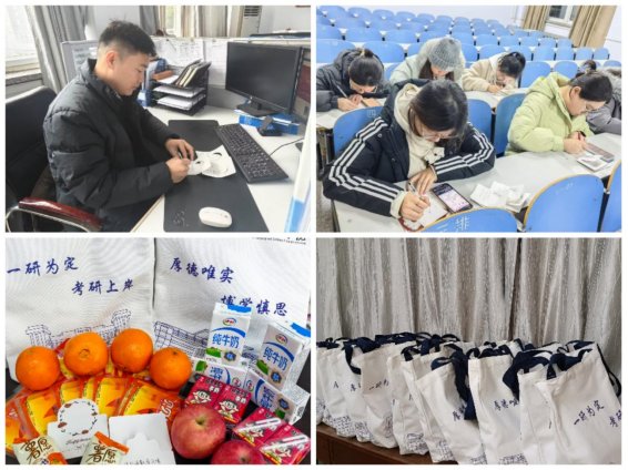 活动开始前,公司为考研学子们精心准备了考研加油包,其中包含老师和同学们手写的祝福卡片、“考研上岸”定制包、“牛”气冲天的牛奶、一战“橙”硕的橙子、“苹”稳上岸的苹果、“温暖随行”的暖贴、“片片顺利”的薯片等,满满的营养与暖暖的关怀,寄托着公司对考研学子们的殷殷期望和美好祝愿。