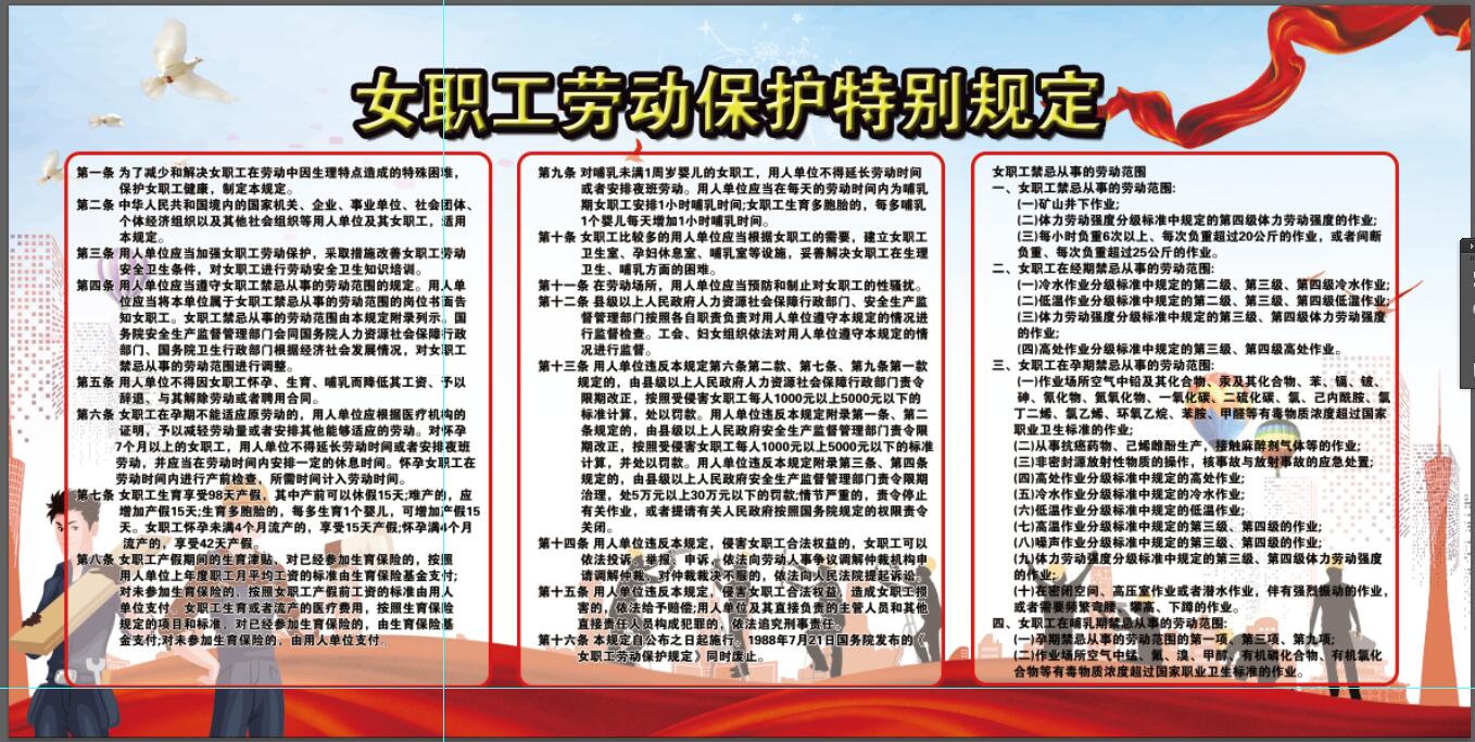 公司分工会共有女教工17人,利用制作宣传板报、悬挂宣传横幅、微信公众号、QQ群、微信群等,推出了《女性维权月-女性维权知识知多少》、《女职工劳动保护特别规定》、《女职工劳动保护特别规定》系列解读等专题文章,进行宣传学习。