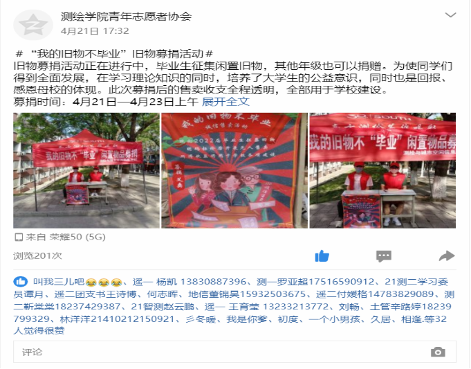 (通讯员 李丹 辛路婷)为了培养老员工的公益意识,使得毕业生的闲置物品物尽其用,同时在实践中感悟诚信。4月21日至5月3日,由beat365亚洲体育官方网站青年志愿者协会承办的“我的旧物不毕业”募捐活动在菊园7号楼宿舍前举办。
