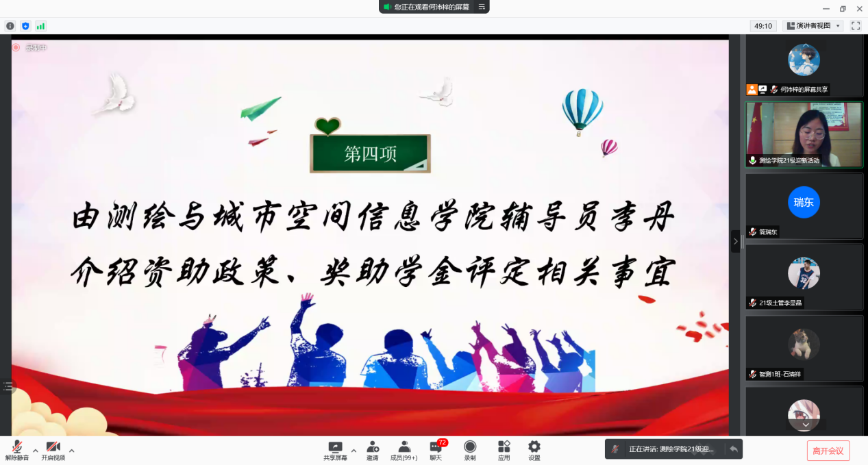 会议最后,米启超书记做总结发言。米书记表达了全院师生对21级新生的期待,同时对新生提出三点建议:第一,整装待发,步入老员工活;第二、确立目标,勇敢向前;第三,知行合一,努力发展。