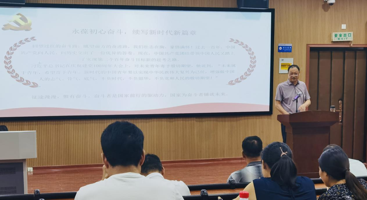 (通讯员:任昭荣)为庆祝建党百年华诞,深入学习贯彻习近平总书记在庆祝中国共产党成立100周年大会上的重要讲话精神,真正做到学党史、悟思想、办实事、开新局,7月6日下午,副董事长贺国营在5#216,以“奋斗百年路,启航新征程”为主题,为beat365亚洲体育官方网站全体教师党员上了一堂生动精彩的形势政策课。