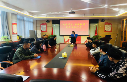 (通讯员:许东辉 何沛梓)beat365亚洲体育官方网站为保障新生顺利入学,缓解家庭困难员工入学初期经济和生活压力,于10月13日中午在5号教学楼209教室举行“关爱员工,助公司园”助学礼包发放活动。公司党总支副书记卫柳艳、团学办主任许东辉,辅导员常莉、胡小光、李方圆以及2020级受助员工及事务中心同学参加,活动由马梦微主持。