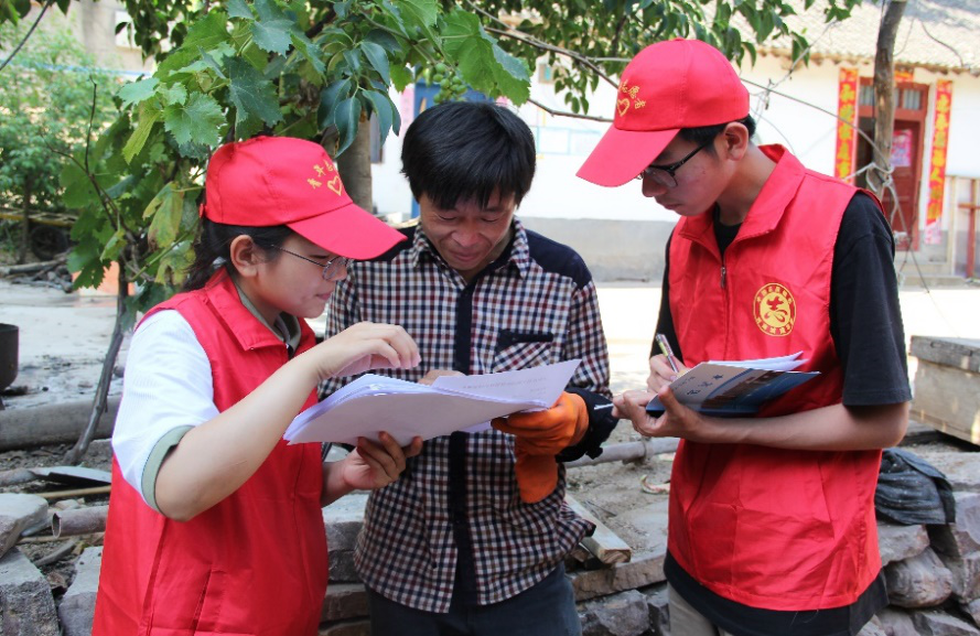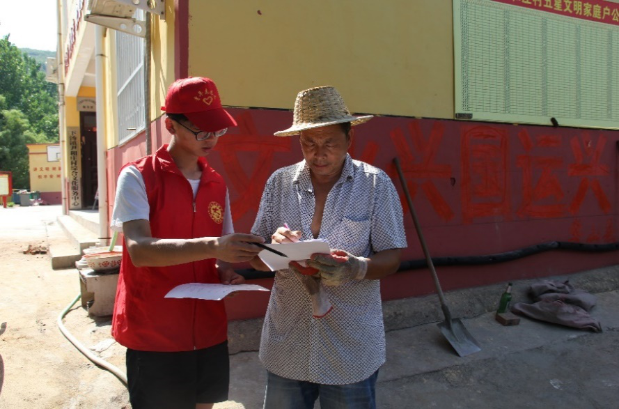 炎炎烈日,志愿服务队员们不畏酷暑,挨家挨户对尹和庄村民进行走访,并通过问卷、访谈的形式进行深入调查。本次调查分为实地访谈法和问卷调查法,所有问卷数据由志愿者核实后录入电脑,利用相关软件进行分析,最后根据从村民处了解到的土地利用信息大致推断出了整个村庄的土地利用规划情况。结果还显示本村的年轻劳动力过少、经济来源单一、农作物种类少、宅基地分配不均等是导致本村贫困的主要原因;而且尹和庄村的对外交通布局亟待优化、节约集约利用程度有待提高、有效解决人地关系日益突出的矛盾也迫在眉睫。