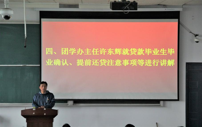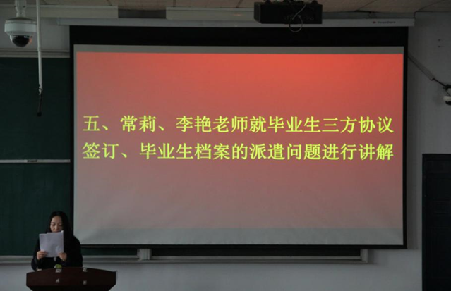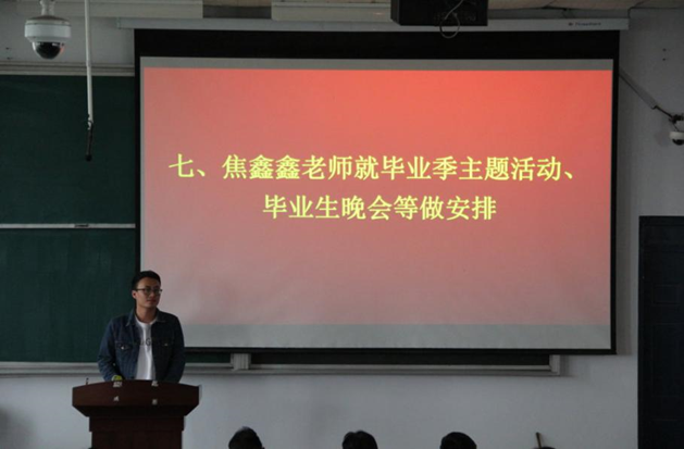 会议分别由李艳、常莉和许东辉老师分别对员工的档案派遣、毕业生国家助学贷款等政策进行了解读;使忙于毕业论文与课程设计的员工们能专心投入到学习中。接着由卫柳艳、陈云生老师分别就毕业生进行安全教育、毕业资格审查、学位授予等问题进行了讲解;然后焦鑫鑫老师通报了送毕业文艺和体育活动安排;最后米启超书记向员工们提出了勉励并给予祝福,希望员工们能互相团结,不忘感恩,要有崇高理想和高尚品格,做一个诚实守信、勇于创新的人,在工作岗位上一定要奉公守法、廉洁从业,努力在社会的各行各业、各个领域作出卓越的成就,开创自己辉煌的未来。