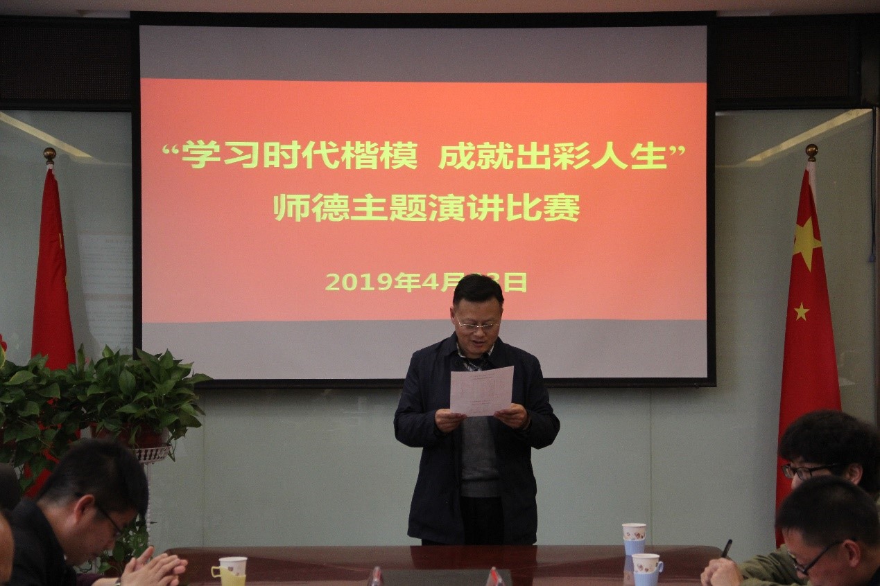 (通讯员 徐花蕊)为深入贯彻落实公司《关于开展2019年“学习时代楷模,成就出彩人生”师德在主题教育活动的通知》的文件精神,进一步增强广大教师教书育人的责任感和使命感,真正成为有理想信念、有道德情操、有扎实学识、有仁爱之心的“四有”好老师,不断提高公司公司产品质量水平。4月23日,公司在5#B209会议室举行了“学习时代楷模,成就出彩人生”师德主题演讲比赛。