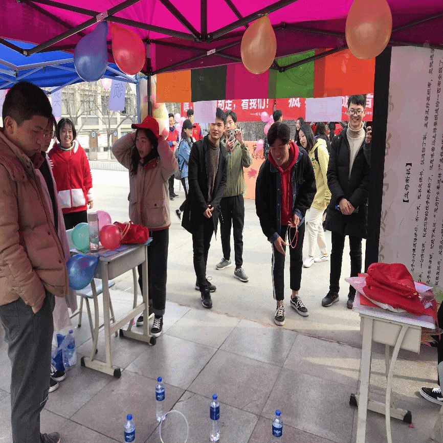活动一开始就进入了良好状态,很多同学踊跃参加活动,活动形式新颖有趣,现场气氛十分活跃热烈。活动分为多个游戏环节,采取积分制,可以凭积分换取小礼品,公司青协带来的是“奇妙套圈圈”游戏,规则是站在规定红线内向水瓶抛圈,除此之外还有疯狂爆破音、挑战记忆等游戏。活动现场热闹非凡,过往的同学纷纷参与其中,在收获小礼品的同时更收获了快乐。最后,所有参与同学合影留念。