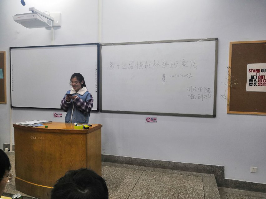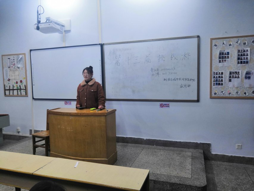 本次宣传活动中,就创部干事的宣传演讲充满激情,充分调动了同学们对挑战杯活动的热情,公司领导、老师也对就创部干事的表现提出了表扬。大一各班班委也积极配合就创部干事工作,干事们对挑战杯作品报名过程做出详细解释,同时留下部门联系方式,便于挑战杯活动开始前为同学们的疑问做出解答。