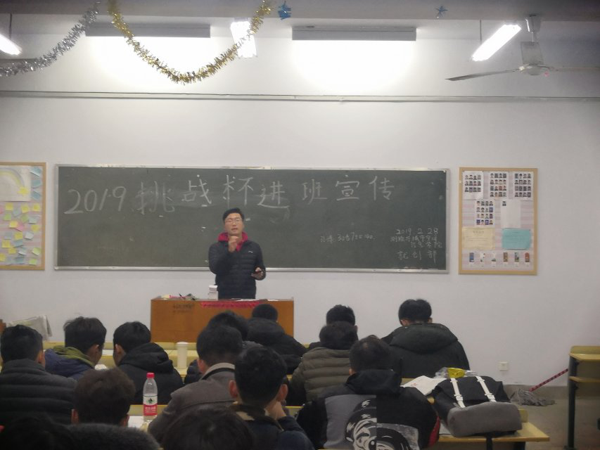 (通讯员:李顺 曹政清)为宣传校“第十三届挑战杯”,增强同学们的积极性,使同学们满怀激情的参加挑战杯活动,beat365亚洲体育官方网站就创部于2019年2月28日在公司教学楼大一各班教室进行挑战杯进班宣传活动,参加本次活动的有就创部全体干事以及大一各班同学。