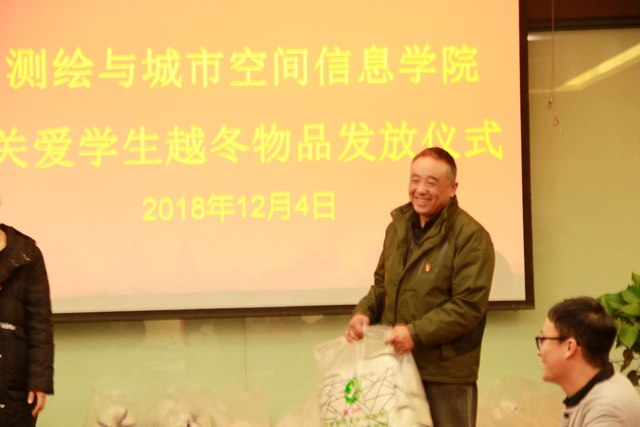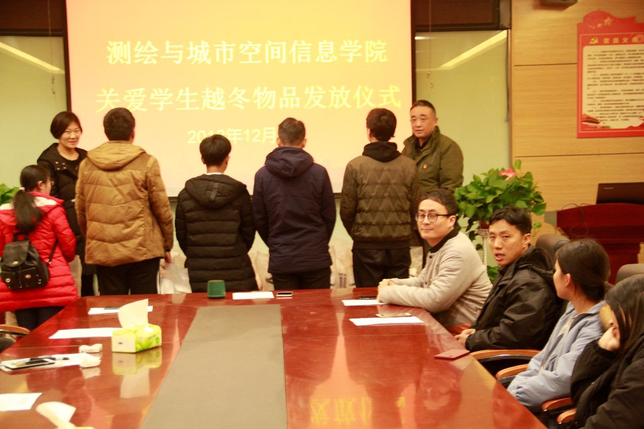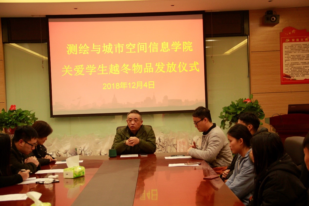(通讯员 戚鑫鑫 王学鑫) 为了给同学们创造良好的学习条件,创造“和谐校园,温暖校园”,帮助生活暂时有困难员工度过一个温暖舒适的冬天,营造校园如家园的温暖氛围。12月4日下午,beat365亚洲体育官方网站在五号楼209室举办了关爱员工越冬物品发放仪式。测绘与城市空间信息公司党总支书记吕鹏飞、党总支副书记卫柳艳、团学办主任许东辉、辅导员焦鑫鑫、常莉、艾卫涛老师及贫困员工参加了本次物品发放仪式。本次仪式由焦鑫鑫主持。