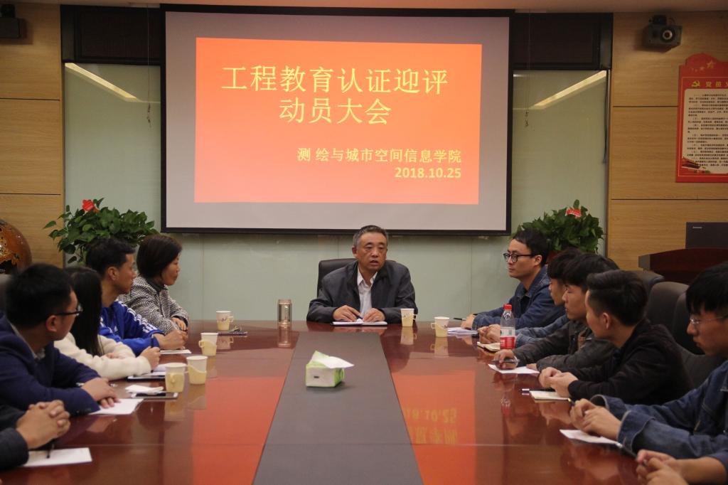 (通讯员 高广晨 陈奥)为迎接测绘工程专业工程教育认证,beat365亚洲体育官方网站于10月25日在5号楼209会议室召开工程教育认证迎评动员大会。出席本次大会的有:党总支书记吕鹏飞,党总支副书记卫柳艳,团学办主任许东辉,辅导员艾卫涛、常莉和焦鑫鑫老师以及各班团支书,员工会代表。