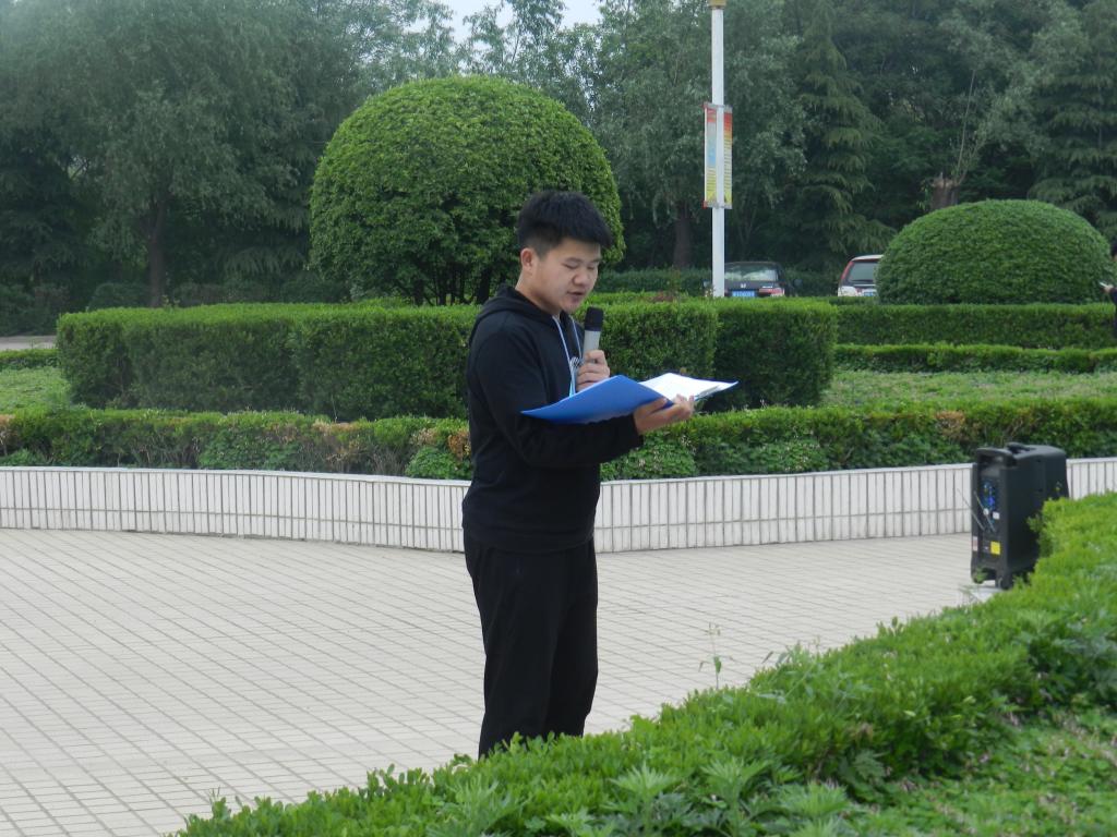 国旗护卫队成员迈着铿锵的步伐来到了国旗台下,全场一片肃静。在激昂的《义勇军进行曲》歌声中,升旗手振臂一挥,鲜艳的五星红旗徐徐展开,在初升的阳光映照下、全院师生的注目中,迎着初升的太阳,在晨曦中迎风飘扬。升旗仪式完毕,接下来就是员工代表马德山同学在国旗下讲话,他演讲的话题是“享受过程”,他说:“知足者常乐,不知足者常进,很少有人能知道需付出多少努力才能实现心中的梦想,我们只能不断前进、前进,再前进,一万年太久我们只争朝夕! 只争朝夕,在你茫然的时候;只争朝夕,在你沮丧的时候;只争朝夕,在你懒散的时候,只争朝夕,在你还拥有梦想的时候;太阳每天都是新的,生活永远充满希望,现在就开始吧,把握每个瞬间,不要再犹豫! 珍惜每一天,享受每一天。”演讲结束后,此次升国旗仪式正式结束,同学们有序退场。