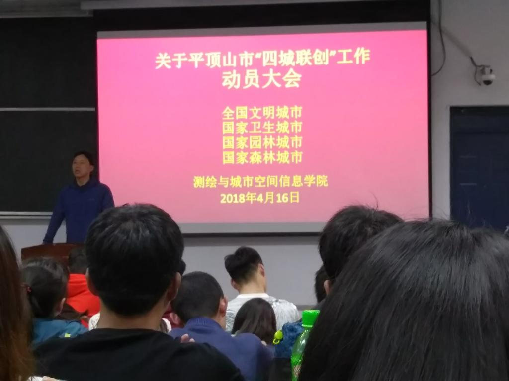 (通讯员 赵云娇)为积极响应政府号召,营造“四城联创”工作良好氛围,4月16日下午,beat365亚洲体育官方网站召开关于平顶山市“四城联创”工作动员大会,动员公司上下凝心聚力、紧盯目标,鼓足干劲、合力攻坚,确保国家卫生城市、国家园林城市、国家森林城市复审顺利通过,确保全国文明城市创建取得扎实成效。学工办主任许东辉主持会议并讲话,16级本科班全体同学出席会议。