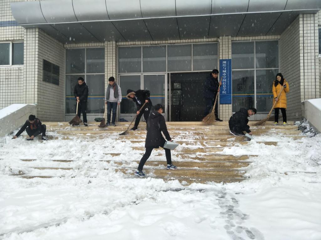 (通讯员:赵云娇,李珍珍)2018年初雪过后,校园里积雪非常厚,路面湿滑,给师生上课及出行带来诸多不便。为了让同学们在大雪纷飞的日子里能够安全出行,尽量避免下雪天出行意外事故的发生。1月4日下午,在员工会主席潘聪、副主席腊梦的积极号召及参与下,beat365亚洲体育官方网站青年志愿者协会全体成员举办了“雪天扫雪,温暖同行”的扫雪活动。