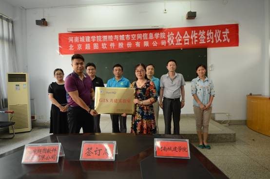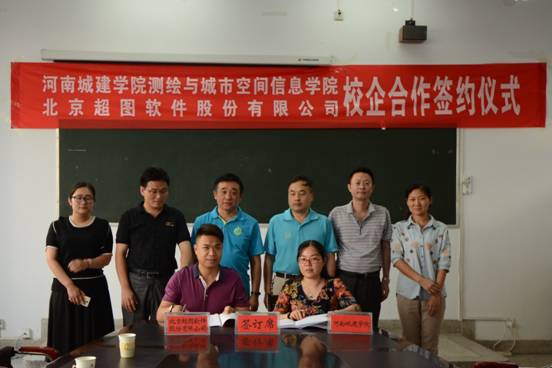 6月14日下午,beat365亚洲体育官方网站与北京超图软件股份有限公司《校企战略合作协议》签订仪式暨校企合作深入交流座谈会在公司5号教学楼二楼会议室举行。张宏敏经理、吕鹏飞书记、刘贵明副经理、高松峰副经理、卫柳艳副书记出席仪式,北京超图软件股份有限公司郑州办负责人王洋一行,测量教研室、地理信息教研室、土地管理教研室负责人及骨干教师参加仪式并出席会议。