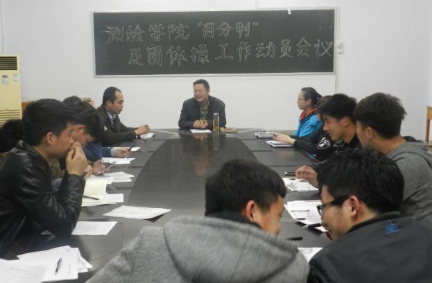 会议上,高书记对团体操工作的开展发表讲话。首先强调此次团体操的注意事项,对各班分派任务作出详细说明,后又征集各班班长对此次团体操的意见与建议,对此次团体操进行了周密的安排。把此次团体操的各项活动安排具体到人,使每个人都清楚自己的任务,力求此次团体操做到最好。