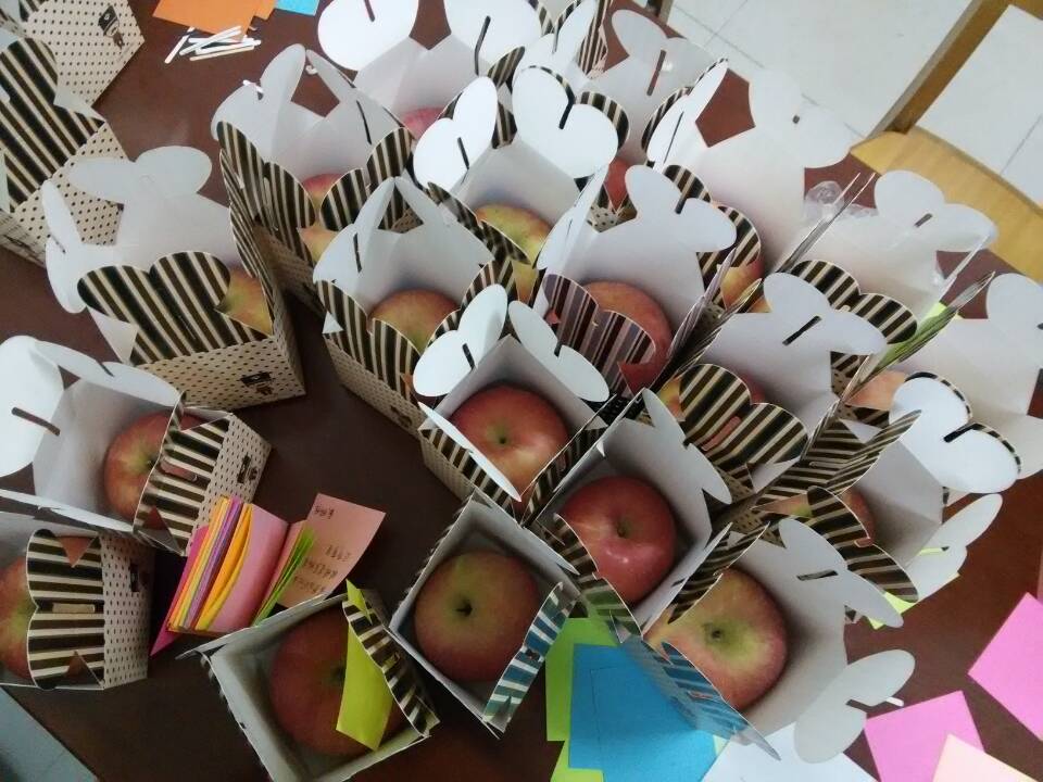 此次活动提前半个月开始筹备,通过公司官方微博、微信等平台进行宣传,同时在文院、理院共设立三个接待点宣传并接受报名。活动期间,不时有同学前来咨询,对那些有疑惑的同学,志愿者也详细地为他们解答。各所高校负责人都高度重视此次活动。为了更方便地取得联系,所有高校负责人都统一加入了“苹果大派送”QQ群 。各负责人在本校统计好名单后发送至群中交换。为了力保信息的真实性与准确性,各高校负责人都时常在群中活跃,积极回答各兄弟院校的订单疑问,有时甚至工作到深夜。名单统计好后,由各校负责购买苹果等各类需求物品然后由相关负责员工成员包装分类。