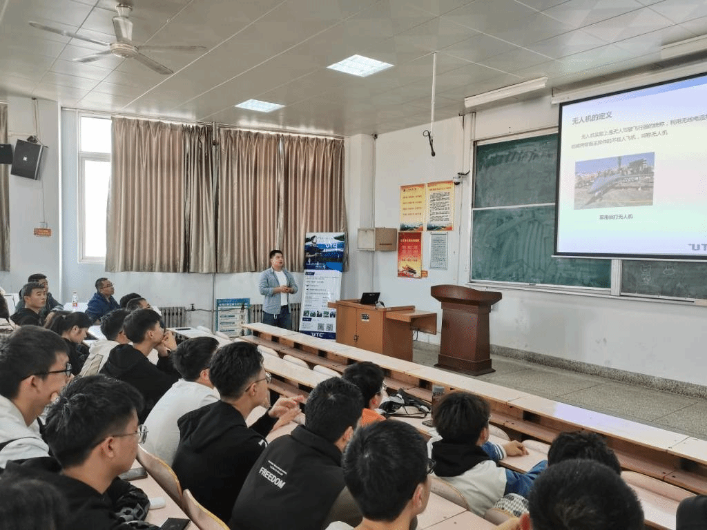 讲座中,刘广庆老师通过现场讲解与案例展示相结合的形式,向公司师生详细介绍了无人机技术在测绘、农业、巡检、安防等领域的最新技术应用,进一步加深了公司师生对无人机行业发展及就业前景的了解,激发了公司员工对无人机技术进行深入学习与研究的热情。