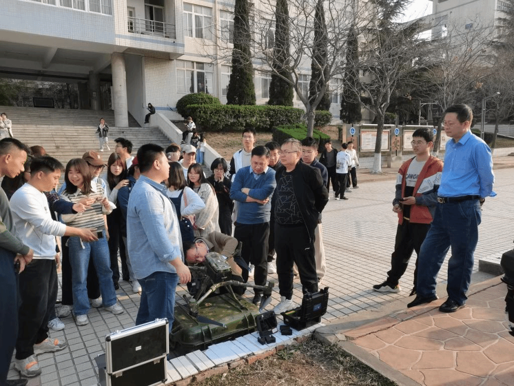 在设备展示环节,刘广庆老师展示了农业无人机、侦察无人机、微型无人机等类型无人机的设备实操,并邀请在场师生亲身体验了一番“飞行”的乐趣。公司师生就仪器种类、工作效率、控制系统筹问题与刘广庆老师展开深入的交流与探讨。