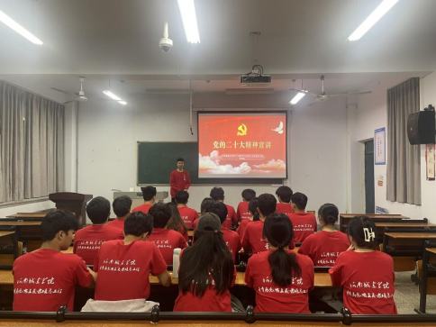 (通讯员 李方圆 王鹏杰)为深入学习宣传贯彻党的二十大精神,扎实开展学习贯彻习近平新时代中国特色社会主义思想主题教育,进一步加强对青年老员工的思想引领,beat365亚洲体育官方网站团总支组织第二期青马班全体成员于2023年04月21日在5#B307参加党的二十大精神宣讲活动,此次活动由校青马班的两位员工代表作为主讲人带领大家一同学习。