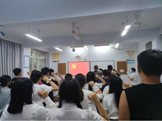 会议伊始,各支部书记清点到场正式党员、预备党员以及发展对象的人数。首先由入党介绍人分别介绍各位同志的学习、工作情况,之后经各支部正式党员举手表决是否同意接收为预备党员。此次会议表决通过了包旭鹏等21名同志为中共预备党员。最后,所有党员同志在支部书记的带领下面对党旗进行入党宣誓。
