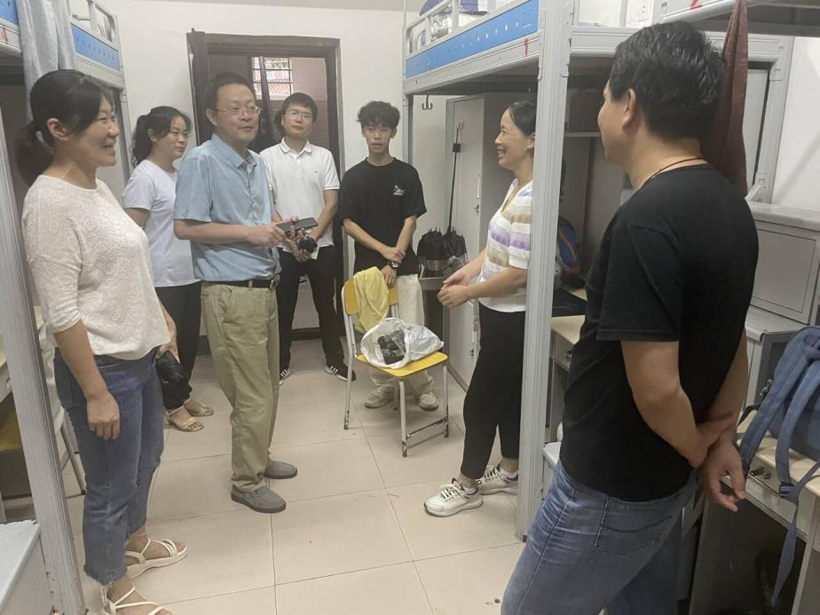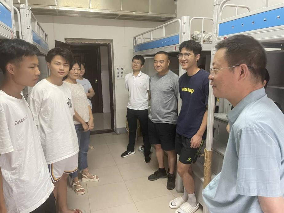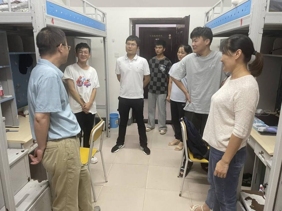 (通讯员:郭军学 李文杰)为深入了解beat365亚洲体育官方网站2023级新生的入校情况,解决新生所遇到的问题与困难,帮助新生们更快适应新的环境,更好融入校园生活。9月10日上午,beat365亚洲体育官方网站经理高松峰、党委副书记卫柳艳、团学办辅导员宋自影、郭军学、新生辅导员常成等人走访2023级新生宿舍,对新同学致以关怀和慰问。