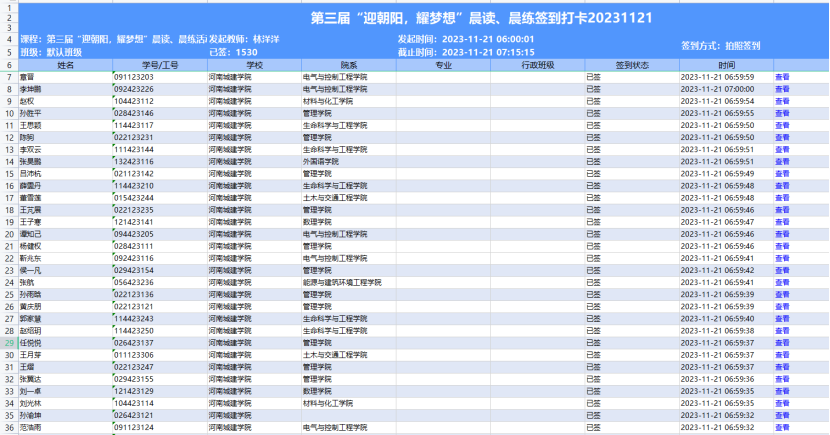 活动第一天,近2000名员工参与,有效签到打卡达1500余次。同学们迎着朝阳“打卡”,晨起锻炼,朗诵经典,热情不熄,收获满满!让我们一起来看一下同学们早起打卡、晨读晨练的精彩的瞬间吧!